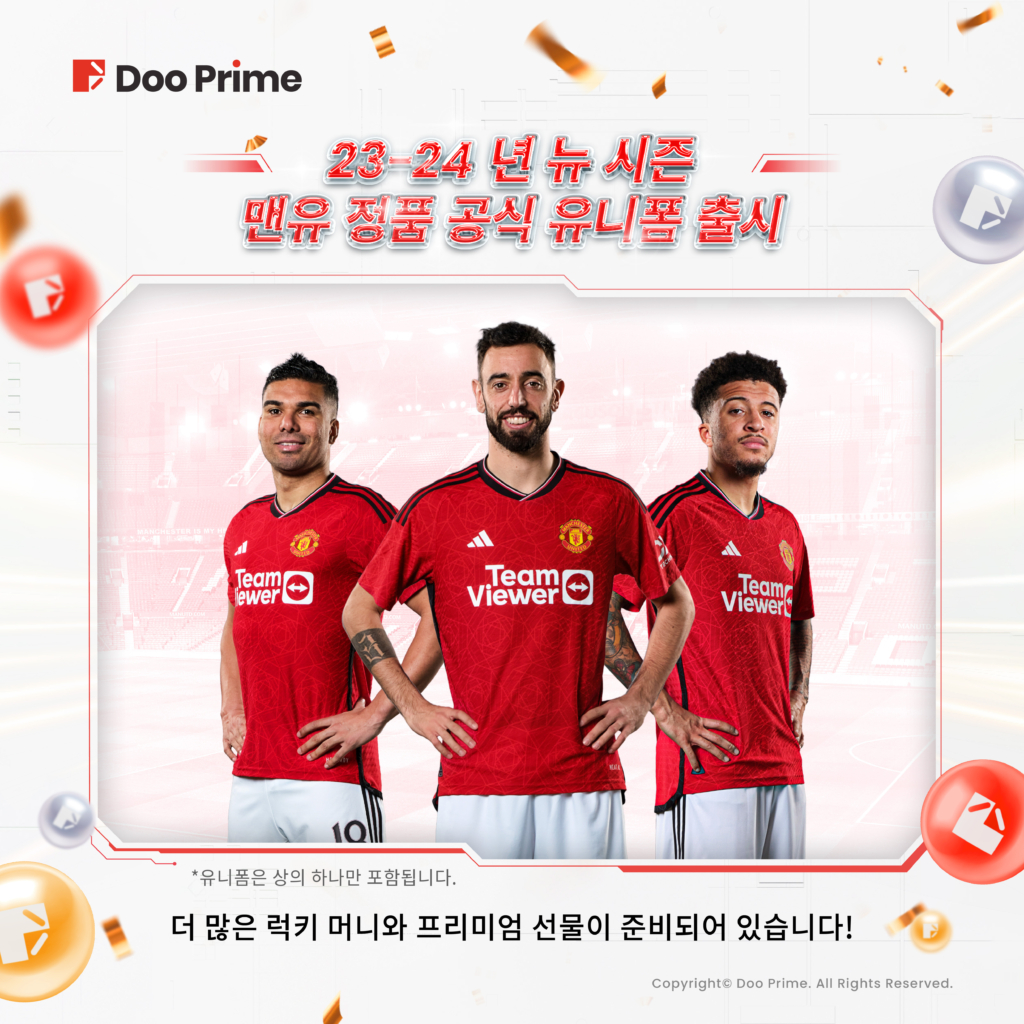또한 Doo Prime은 맨유의 온라인 금융거래 플랫폼 파트너로서 23-24년 뉴 시즌 동안 투자자님들에게 더 많은 프리미엄 브랜드 체험을 선사할 것이며, 맨유 뉴 시즌 한정판 정품 홈그라운드 축구 유니폼도 추첨할 수 있는 기회를 증정해 드립니다. 뉴 시즌을 맞이하여 함께 한정판 유니폼을 착용하고 더욱 아름다운 거래 미래를 향해 나아갑시다.