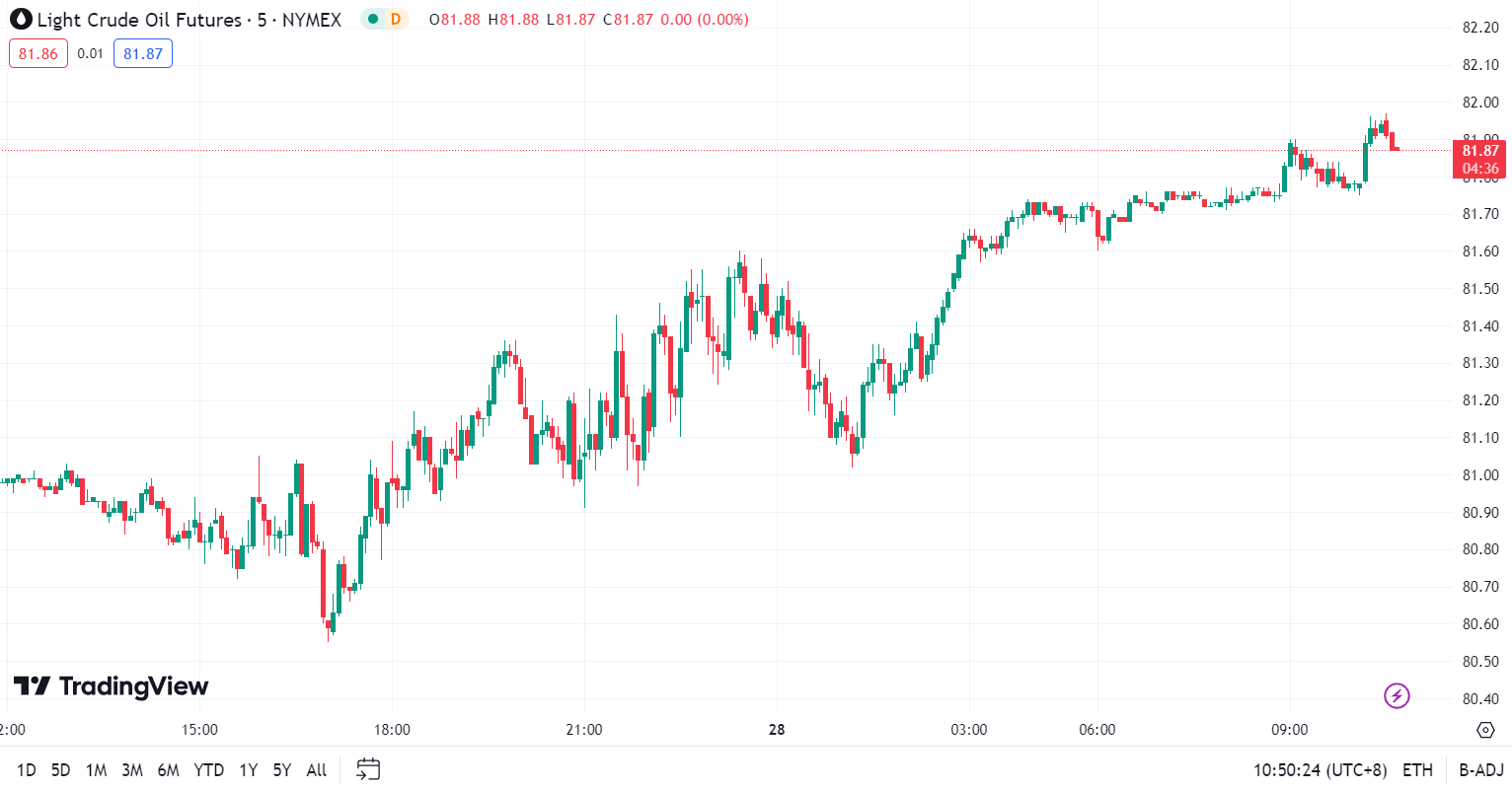 昨日油价技术面先抑后扬,亚欧盘快速回落下探并企稳 80.5 关口震荡回升,美盘前后进一步连阳拉升突破 81 关口并延续上行,晚间美盘二次回踩下探再度企稳 81 关口迎来多头强势拉升,收盘位于 81.7 附近报收探底回升破中阳,整体价格在 80.5 关口如期出现支撑企稳探底回升。