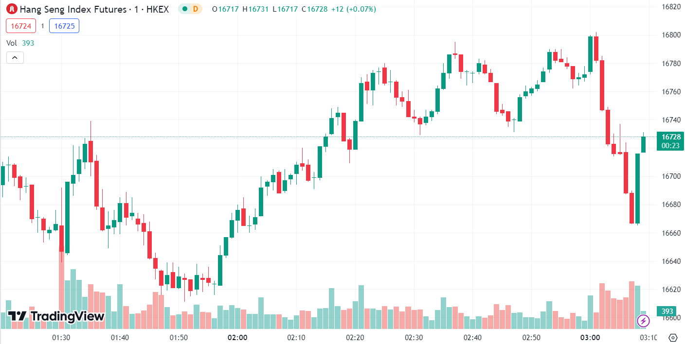 - 恒生指数涨 1.64%,收报 16,782.71 点