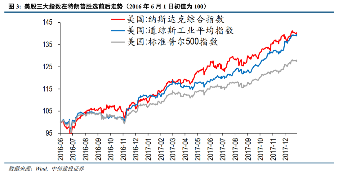 2016 年特朗普执政期间,尤其是执政早期各市场的反应: