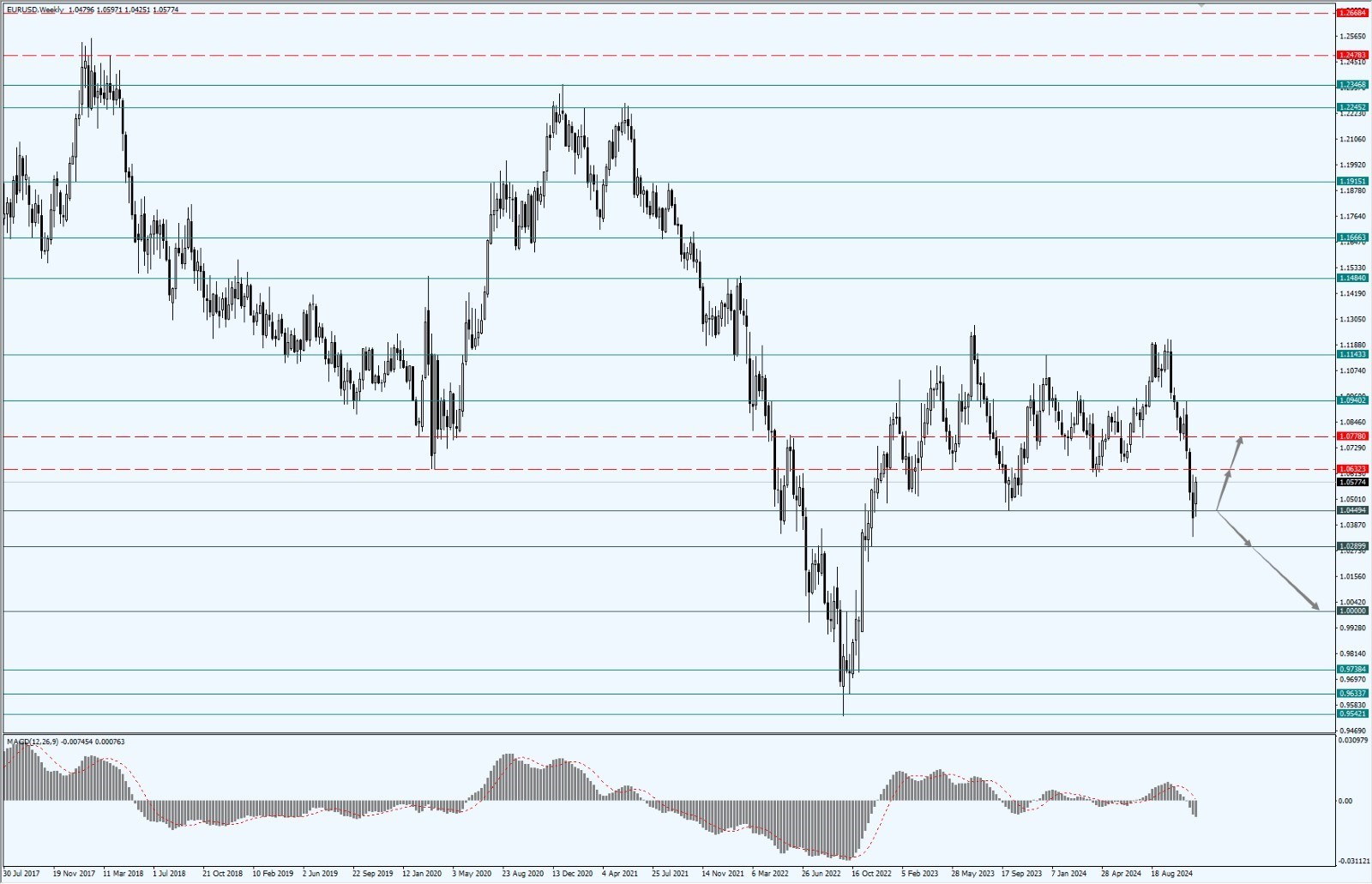 - 如果欧元承压下行并再次力度跌破 1.0449 一线,则依次关注 1.0289 和 1.0000 两个位置的支撑力度。