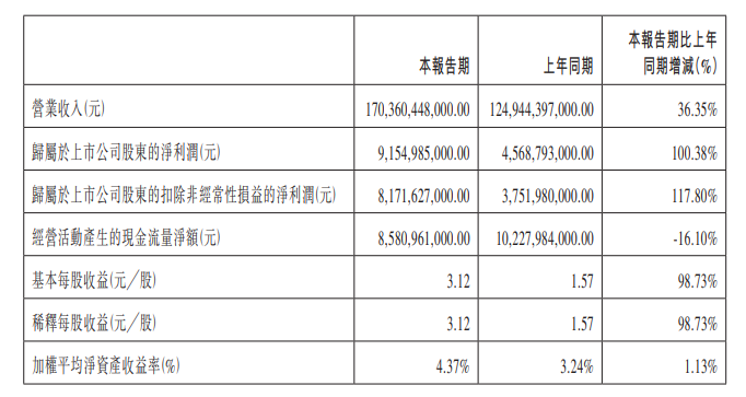 比亚迪净利润同比大增 100%,创下单季度新高