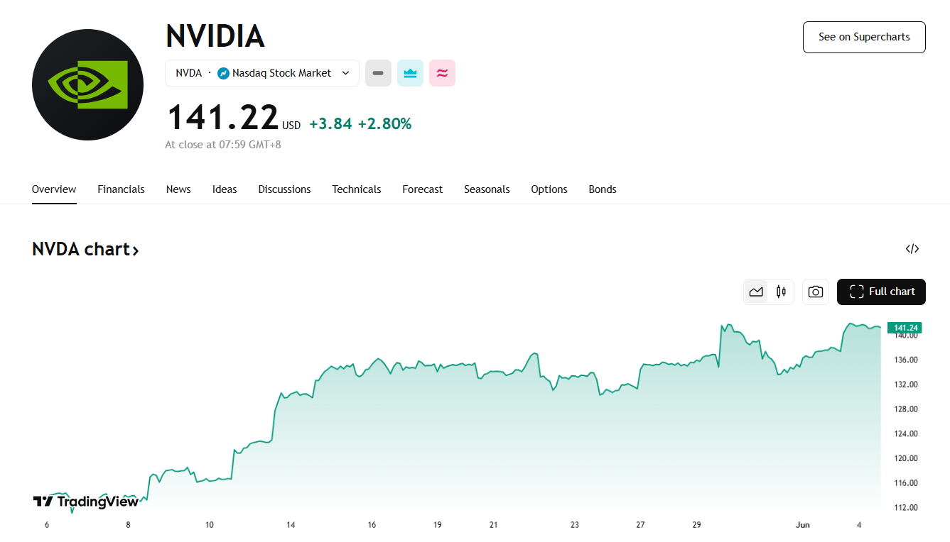英伟达领涨芯片板块,市值达 3.45 万亿重返全球第一