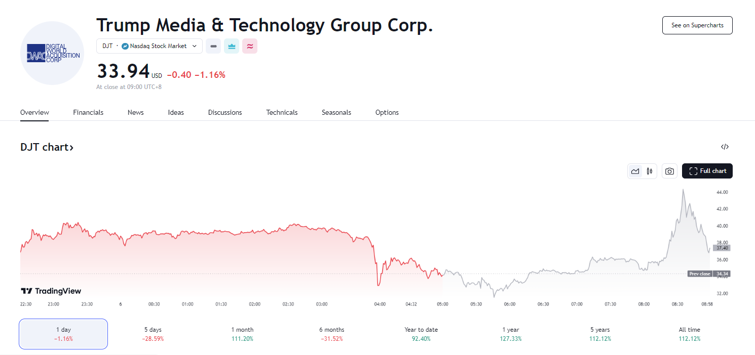 行业动态 | 特朗普暂时领先哈里斯,DJT 盘后大幅反弹 10%