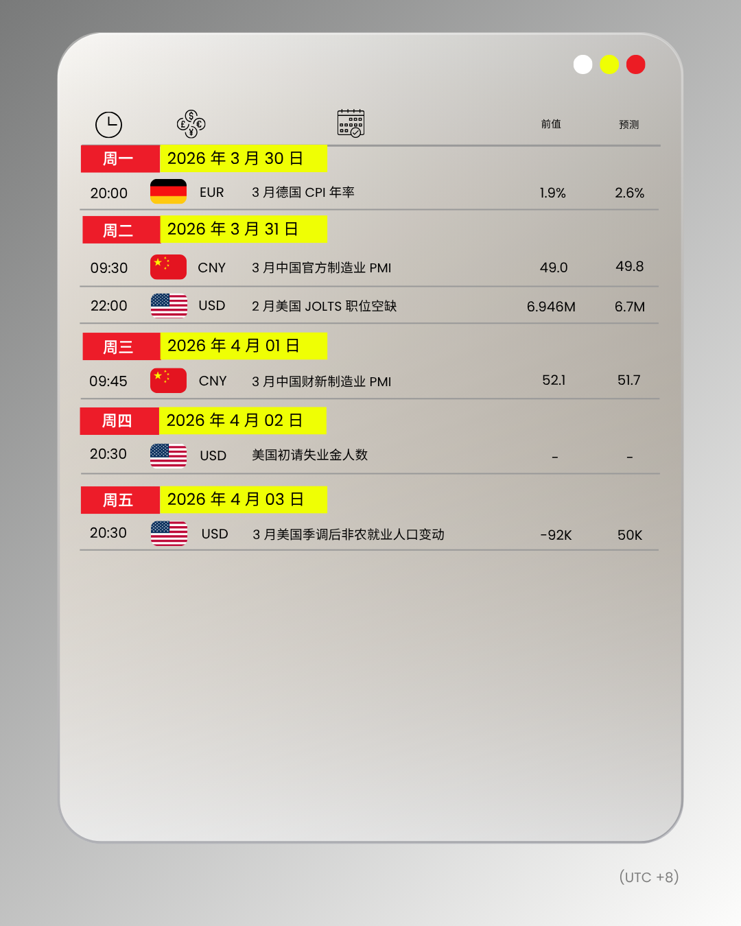 财经日历 | 以下为 2026 年 3 月 30 日至 2026 年 4 月 03 日(GMT+8 北京时间) 全球重大经济事件提醒。在重大行情期间,请确保您已审查您的保证金率,并有足够的保证金来支撑您的风险敞口。