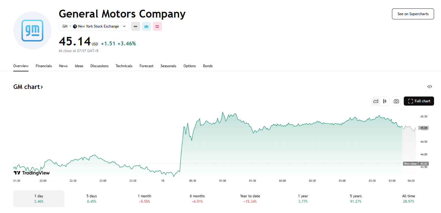 特朗普考虑豁免汽车关税,通用和福特股价拉升
