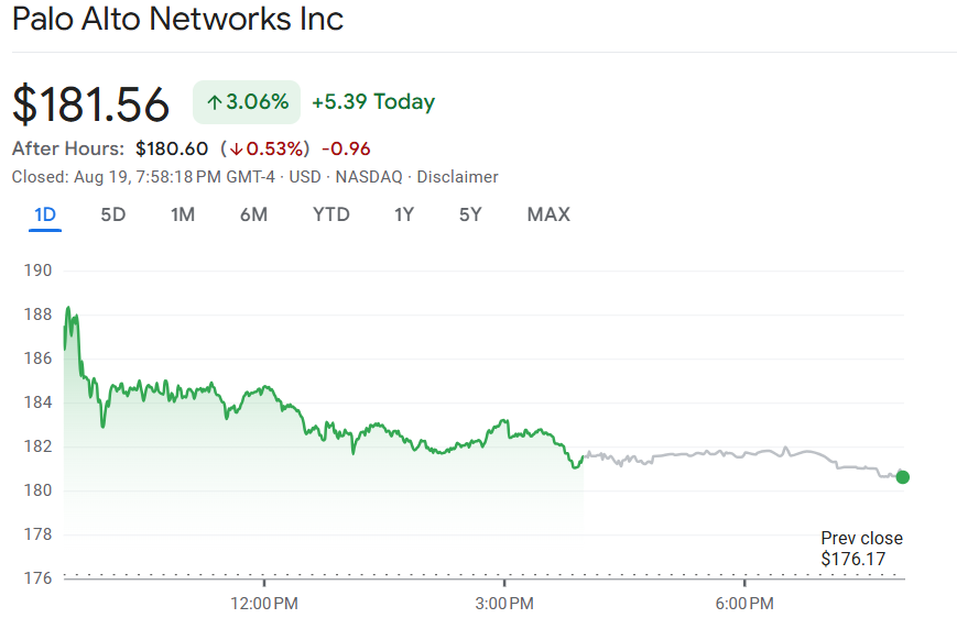 8 月 18 日, 资安服务提供商 Palo Alto Networks 于 2025 财年第四季度发布财报,业绩表现强劲。公司预计,受人工智能热潮推动,2026 财年全年营收与盈利将超出市场预期。消息发布后,Palo Alto Networks 股价在 19 日盘前上涨超过 5%。