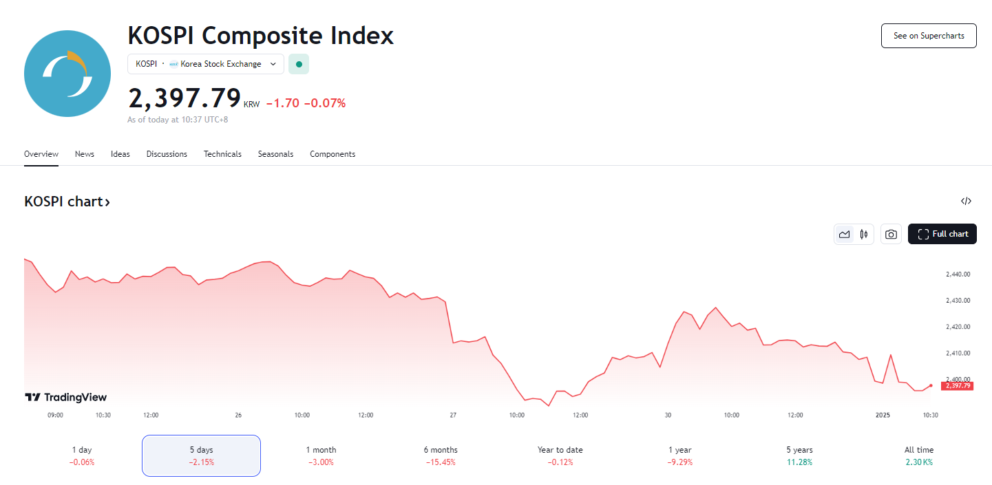 韩国下调 GDP 至 1.8%,KOSPI 指数五连跌