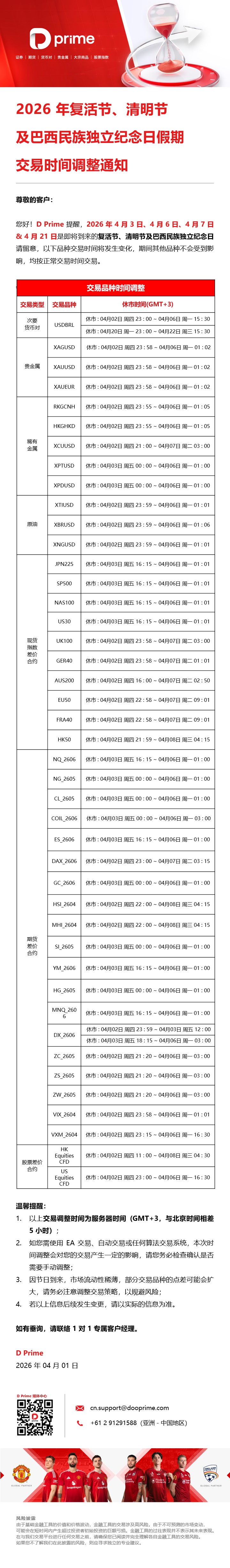 2026 年澳洲进入冬令时交易时间调整通知