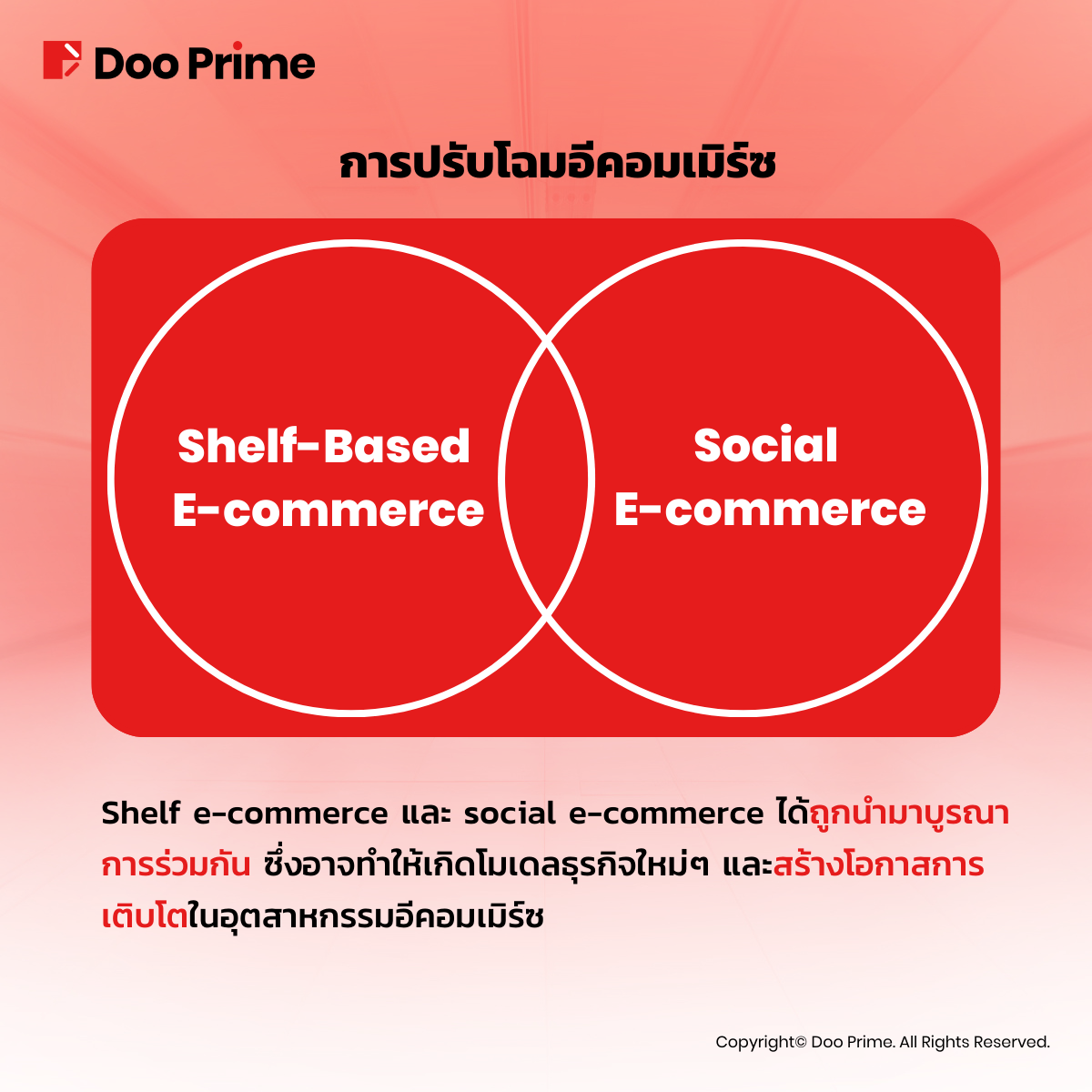 การประยุกต์รวมรูปแบบอีคอมเมิร์ซบ shelf-based และ social กำลังเป็นกระแสอยู่ ณ ขณะนี้ และอาจส่งผลให้เกิดโมเดลธุรกิจใหม่ในอนาคต ซึ่งจะเปิดโอกาสในการเติบโตในอุตสาหกรรมอีคอมเมิร์ซ