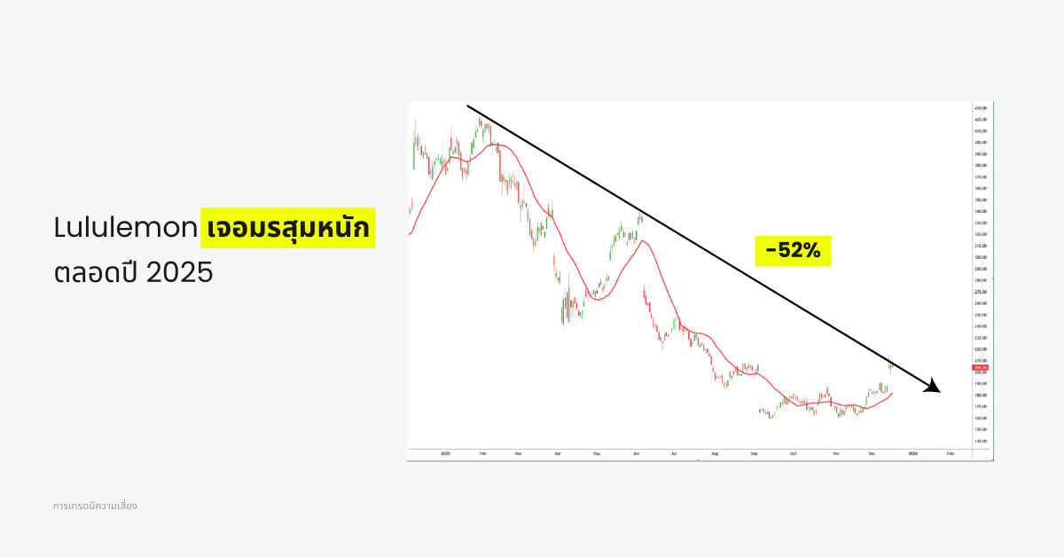Lululemon เผชิญแรงกดดันจากความต้องการของผู้บริโภคที่ชะลอตัว และการแข่งขันที่สูงขึ้นในตลาดเสื้อผ้าพรีเมียม อัตรากำไรถูกจับตาอย่างหนักเมื่อการใช้จ่ายที่ไม่จำเป็นลดลง ส่งผลให้ผลงานต่ำกว่ามาตรฐานของหุ้นกลุ่มผู้บริโภคโดยรวม