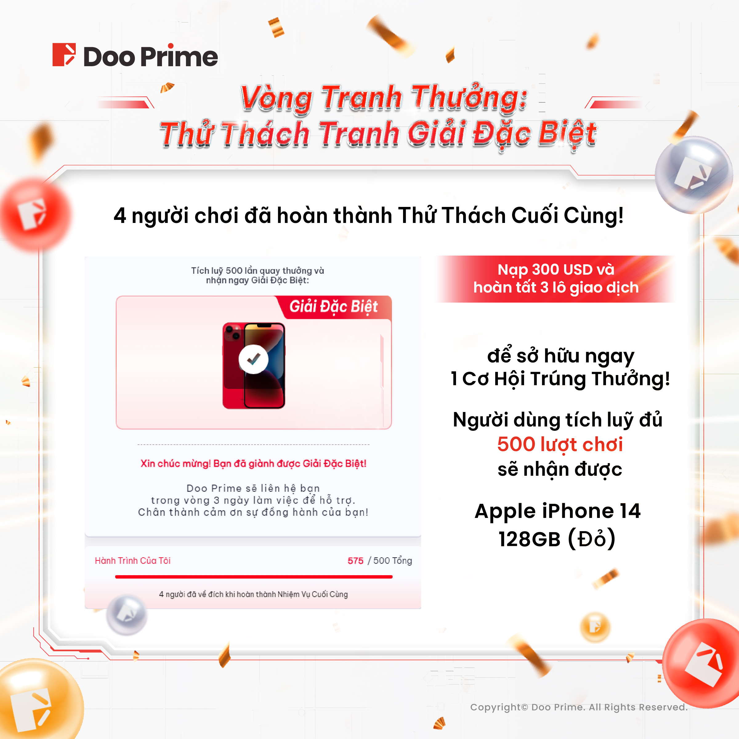 Kể từ khi ra mắt, Giveaways Toàn Cầu Mừng Tết Đoan Ngọ Của Doo Prime đã nhận được sự ủng hộ và tham gia nhiệt tình từ quý khách hàng trên phạm vi toàn cầu. Tính đến thời điểm hiện tại, hơn 10,000 phần quà cùng giải thưởng tiền mặt có giá trị đã được gửi đến tận tay cộng đồng giao dịch.