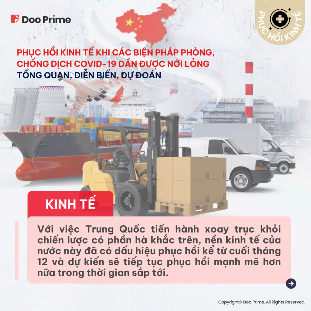 Vào ngày 7 tháng 12 năm 2022, Trung Quốc – nền kinh tế lớn thứ hai thế giới đã nới lỏng chiến lược Không Covid được thiết lập vào ba năm trước đó. Với sự áp dụng của chính sách trên, nền kinh tế Trung Quốc đã phải đối mặt với hàng loạt các thách thức khác nhau kể từ khi dịch bệnh chính thức bắt đầu. Tuy nhiên, với việc Trung Quốc tiến hành xoay trục khỏi chiến lược có phần hà khắc trên, nền kinh tế của nước này đã có dấu hiệu phục hồi kể từ cuối tháng 12 và dự kiến sẽ tiếp tục phục hồi mạnh mẽ hơn nữa trong thời gian sắp tới.